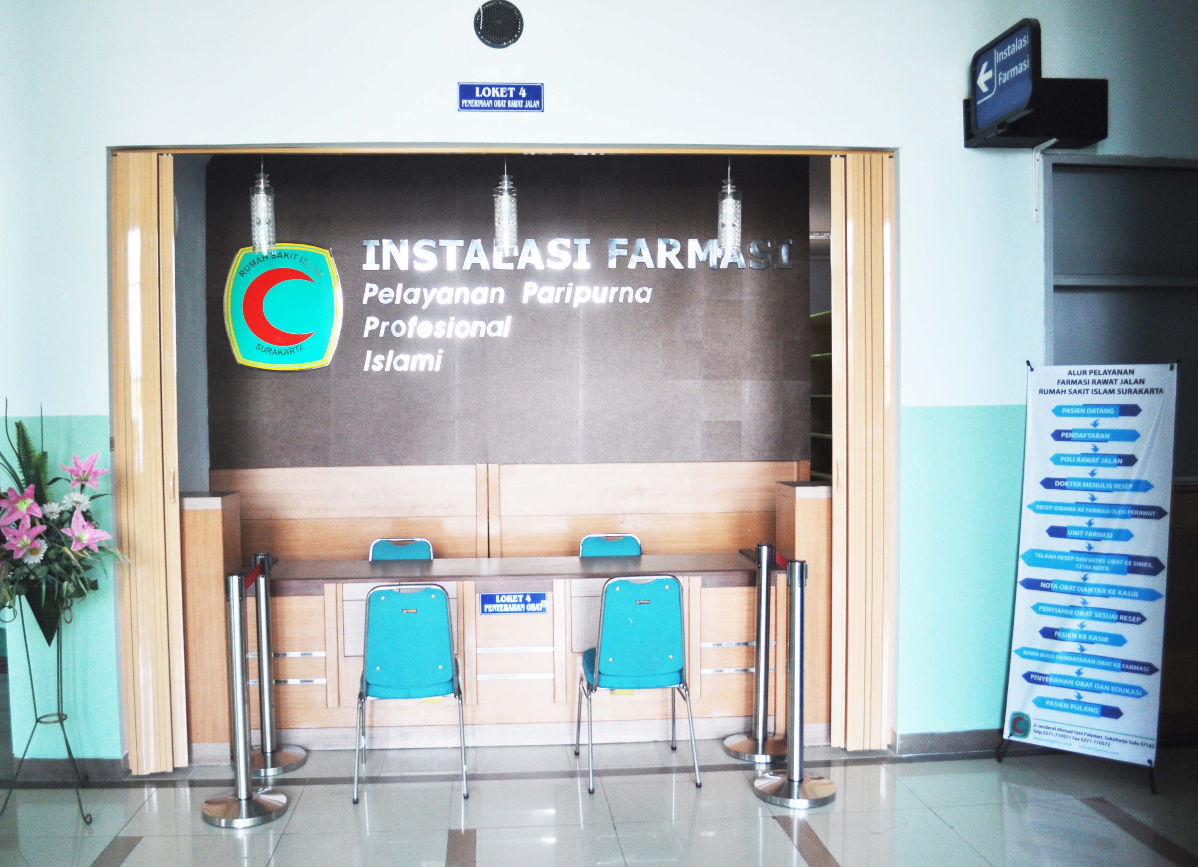 Instalasi yang memberikan pelayanan kebutuhan obat pasien dan masyarakat umum untuk rawat jalan dan rawat inap yang terstandar dan terjamin keasliannya. Pelayanan farmasi dibuka selama 24 jam, yang dilayani oleh apoteker dan asisten apoteker berpengalaman dalam melayani kebutuhan obat pasien.